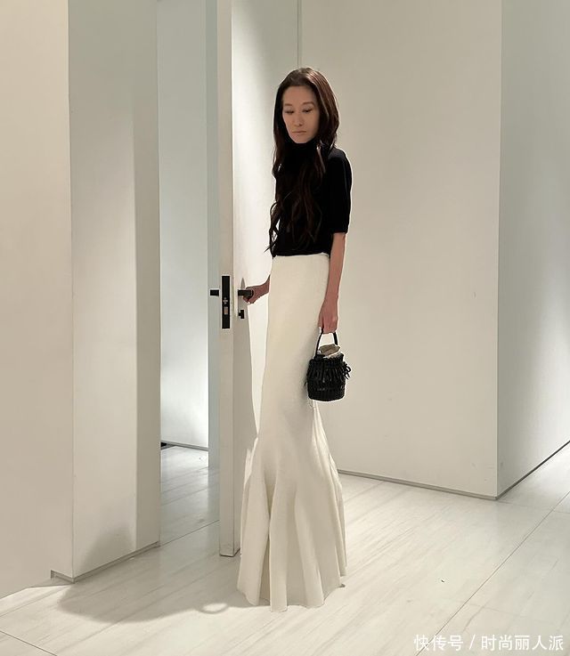 王薇薇这身口舌配,要比去走奥斯卡红毯皆要顺眼,王薇薇此次穿得比拟保守,玄色的中袖上衣配上高腰鱼尾裙,这条鱼尾裙真实让王薇薇惊艳得像是好意思东谈主鱼。